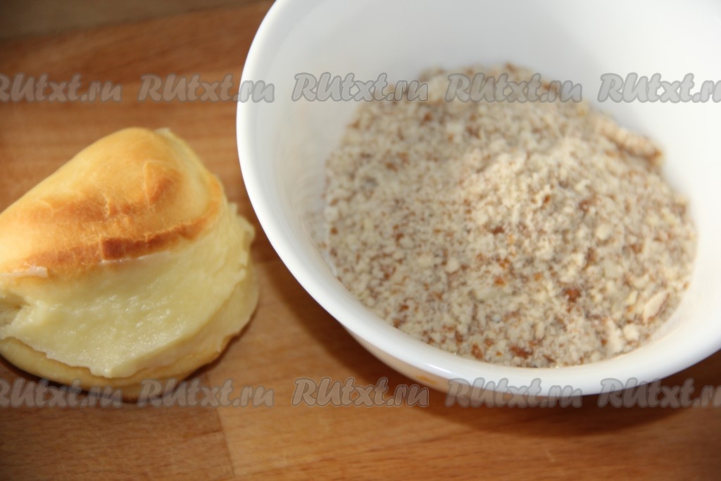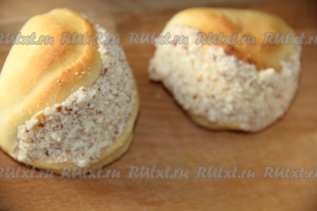 Обмакнуть булочку кремовой стороной в ореховую крошку.