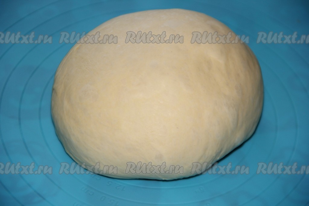 Для замешивания сдобного теста нужно соединить тёплое молоко (температура молока не должна быть выше 40 градусов), дрожжи и сахар, перемешать и оставить минут на 10-15 (до появления на поверхности пенной шапочки). В запенившуюся дрожжевую смесь всыпать муку и соль. Замесить нежное, слегка липнущее тесто, затем влить растительное масло и ещё раз вымесить. Оставить тесто на 1,5 часа в миске, накрыв полотенцем. По прошествии времени тесто, хорошо увеличившееся в объёме, обмять, скатать в шар и оставить на столе на 15-20 минут.