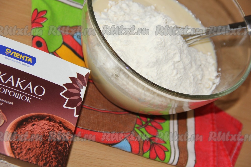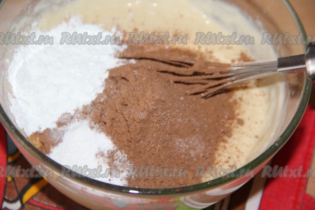 Добавить какао, разрыхлитель, соль, ванилин.