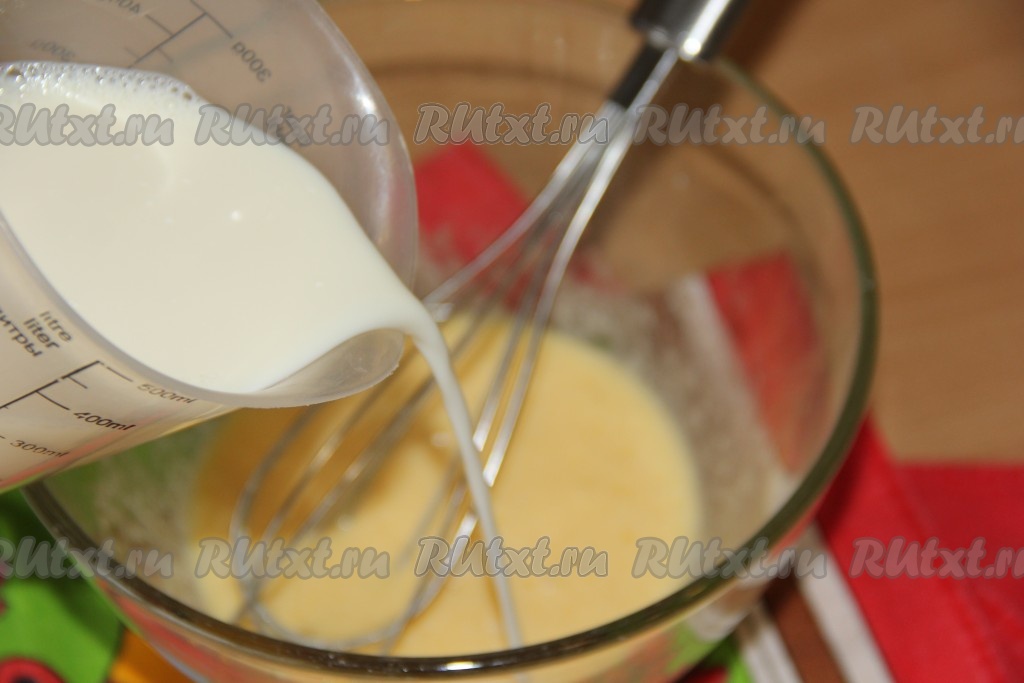 Затем влить молоко и перемешать.