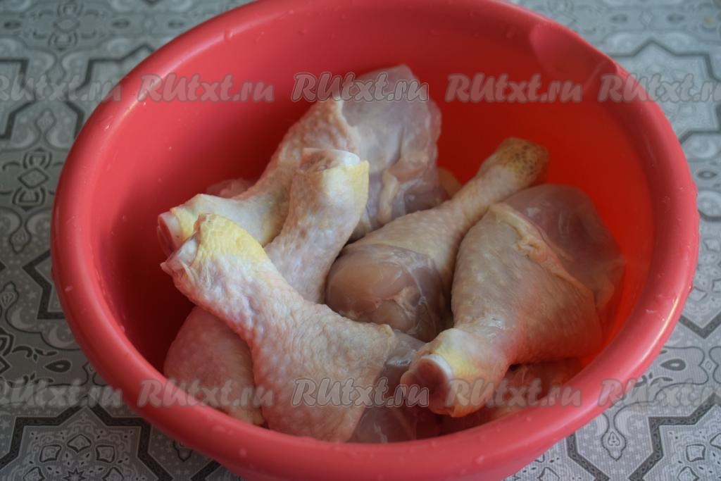 Куриные голени моем под холодной водой и обсушиваем их бумажным полотенцем.