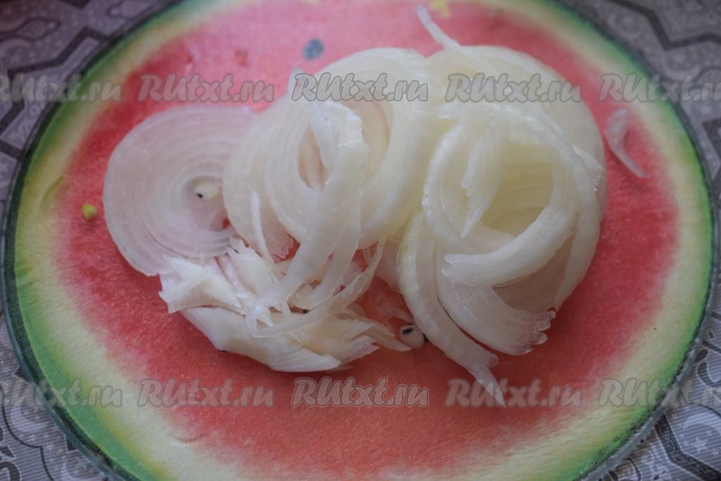 Очищенный лук нарежем на тонкие кольца.