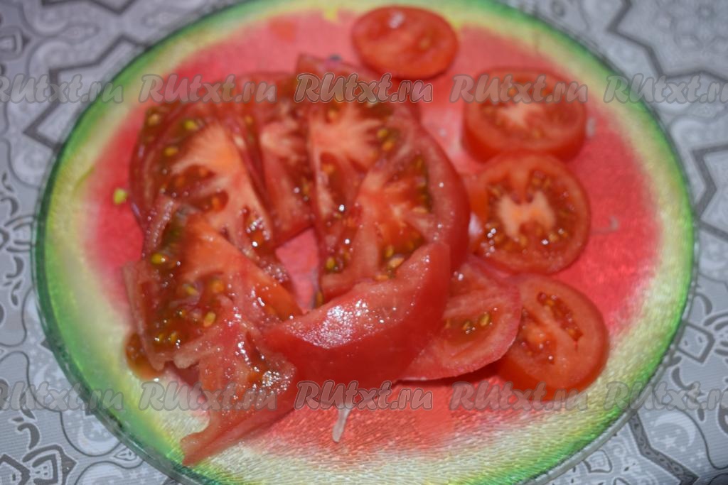 Помидоры нарежем на кружочки (или полукружочки).