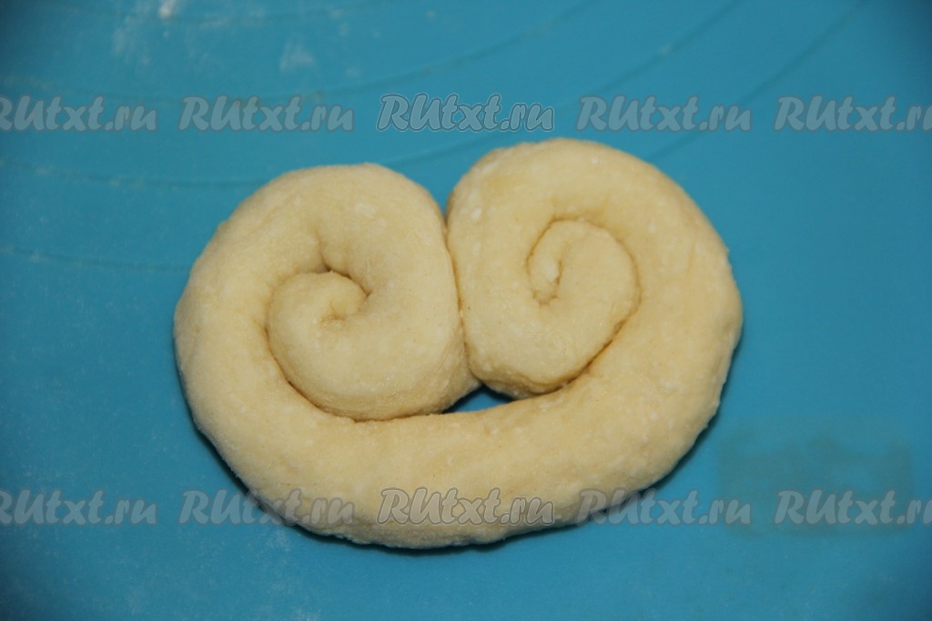 Завернуть жгутик с двух концов в кренделёк (как на фото).