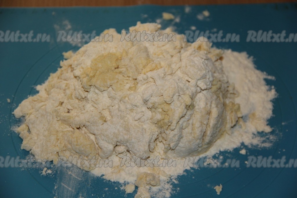Перемешать тесто ложкой, выложить массу на силиконовый коврик и, постепенно добавляя оставшуюся муку, хорошо вымесить тесто.