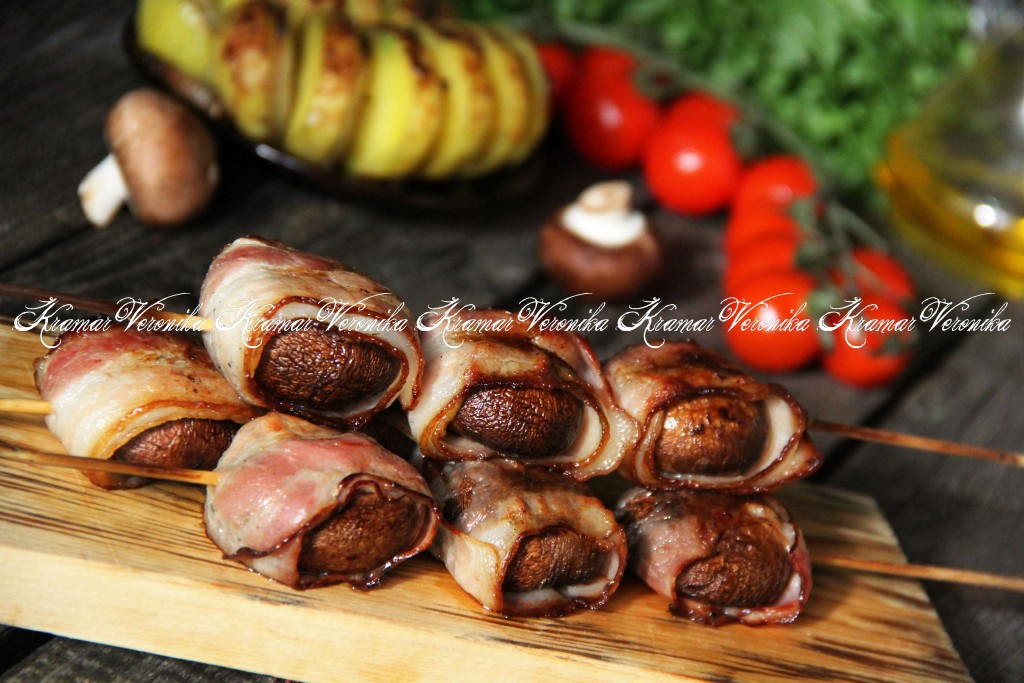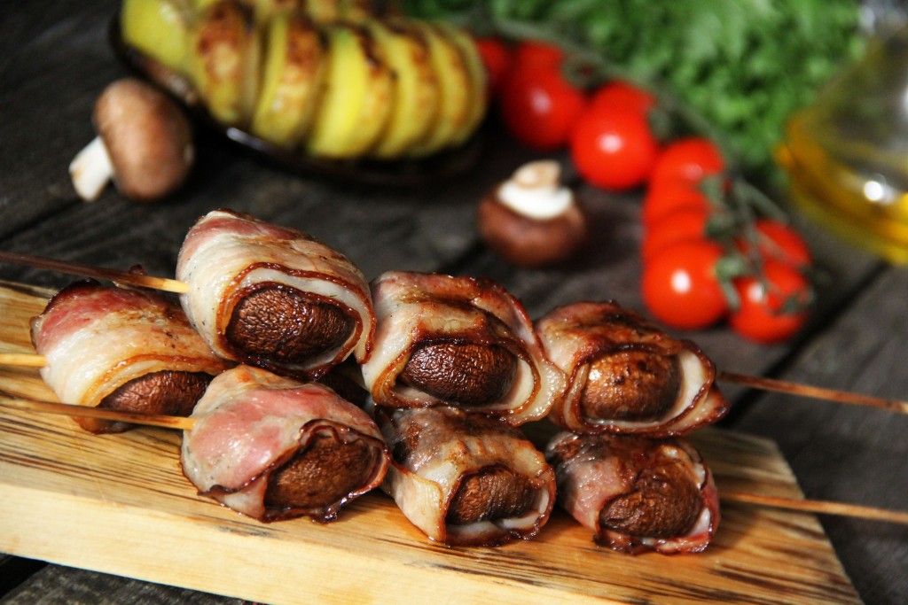 Вот такими аппетитными и очень вкусными получились шампиньоны в беконе, приготовленные на мангале.