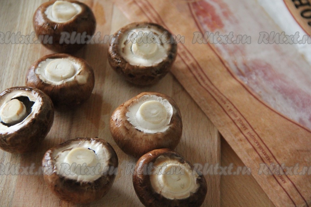 Шампиньоны промыть под водой и обсушить. Срезать ножки.