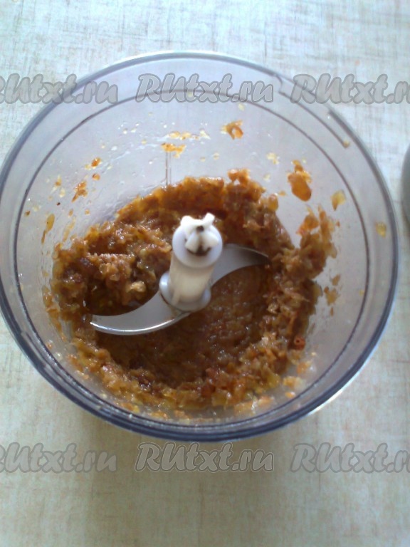 100 грамм изюма залить кипятком на 10-15 минут, затем обсушить, разложив на бумажном полотенце, и измельчить в измельчителе (или в блендере) вместе с 1 столовой ложкой сахара.