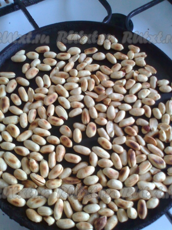 Теперь займёмся начинками. Для приготовления ореховой начинки нужно подсушить орехи на сухой сковороде на умеренном огне, периодически перемешивая.