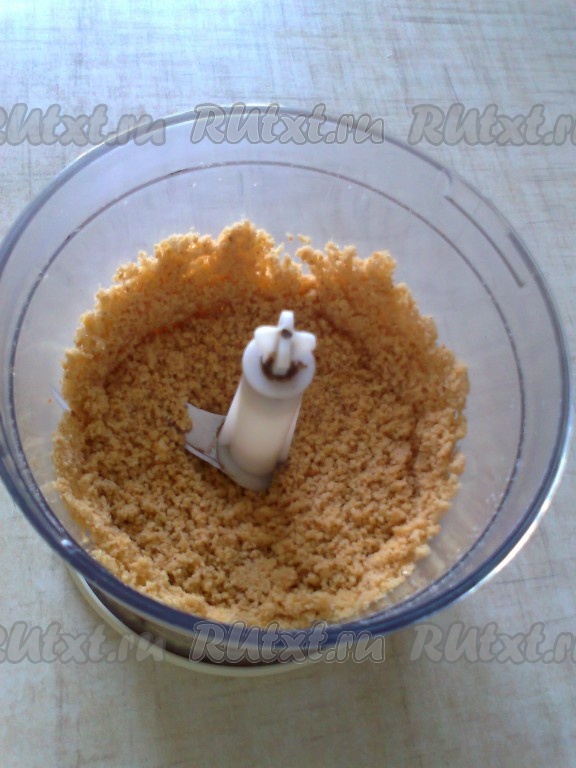 Подсушенным орехам дать остыть, измельчить в измельчителе (или блендере) вместе с 1,5 столовыми ложками сахара в крупу, но не сильно мелко.