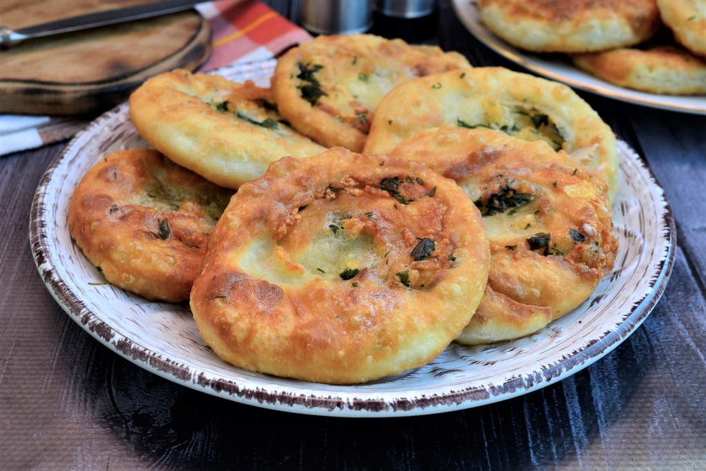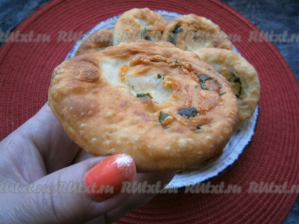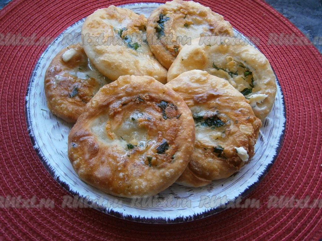 Вкусные, пышные, воздушные пышки, приготовленные на кефире с сыром и зеленью, подать к столу.