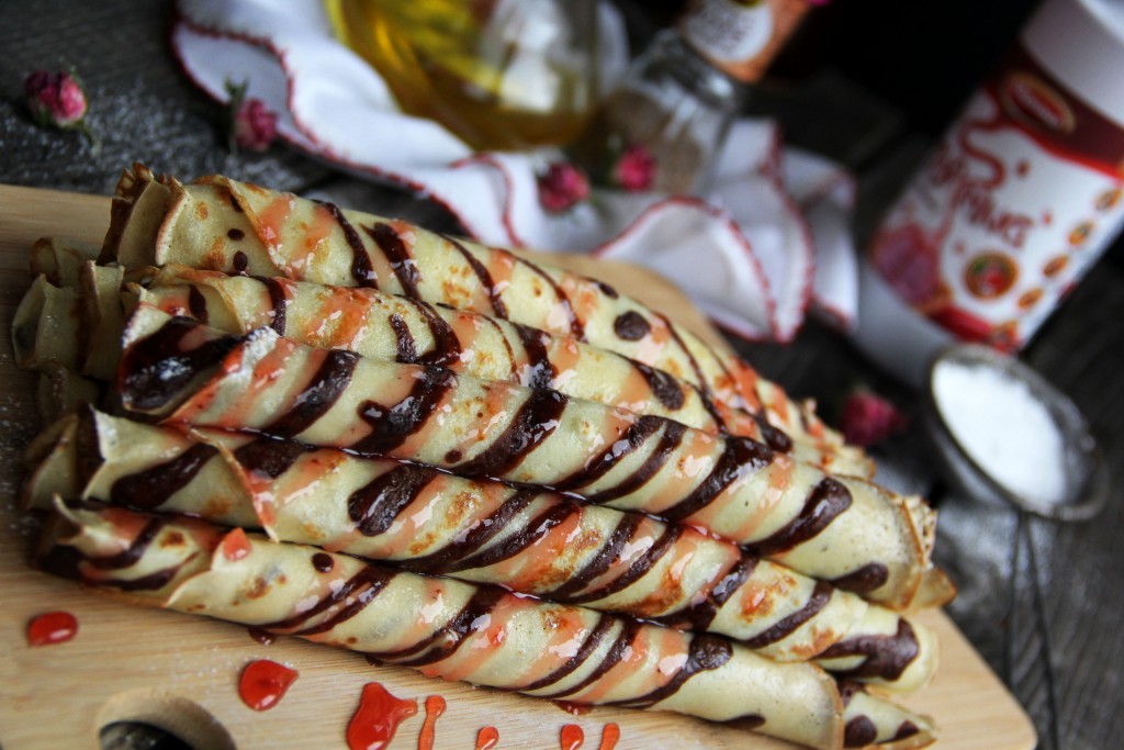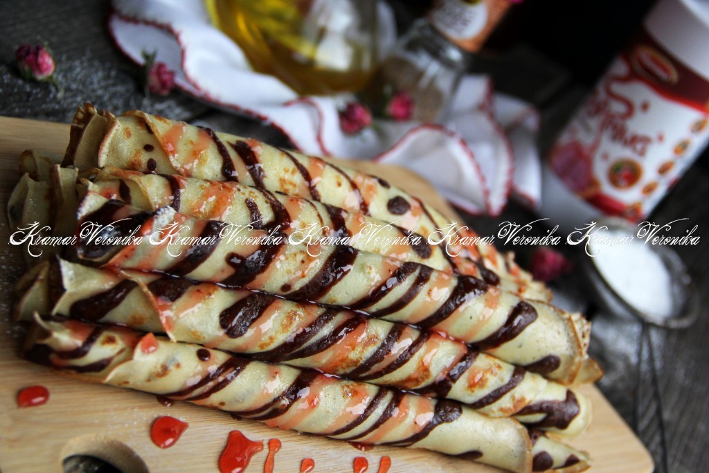 Недавно приготовила очень красивые и вкусные блины, замешанные на молоке и воде. В часть теста добавила какао, в результате получились 2 вида теста: белое и шоколадное. В процессе жарки на белое тесто нанесла полосочки из шоколадного теста, которые очень украсили блинчики и придали им нежный вкус. Такие полосатые блины очень понравились моему ребёнку. Приготовьте аппетитные, красивые и нежные блинчики с какао и порадуйте себя и своих близких замечательным вкусом этих блинов!
