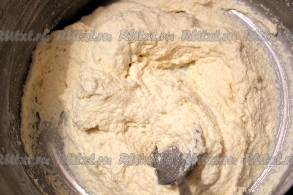 Хорошо перемешать до состояния однородной массы, добавить кусочки фиников (или другую начинку).