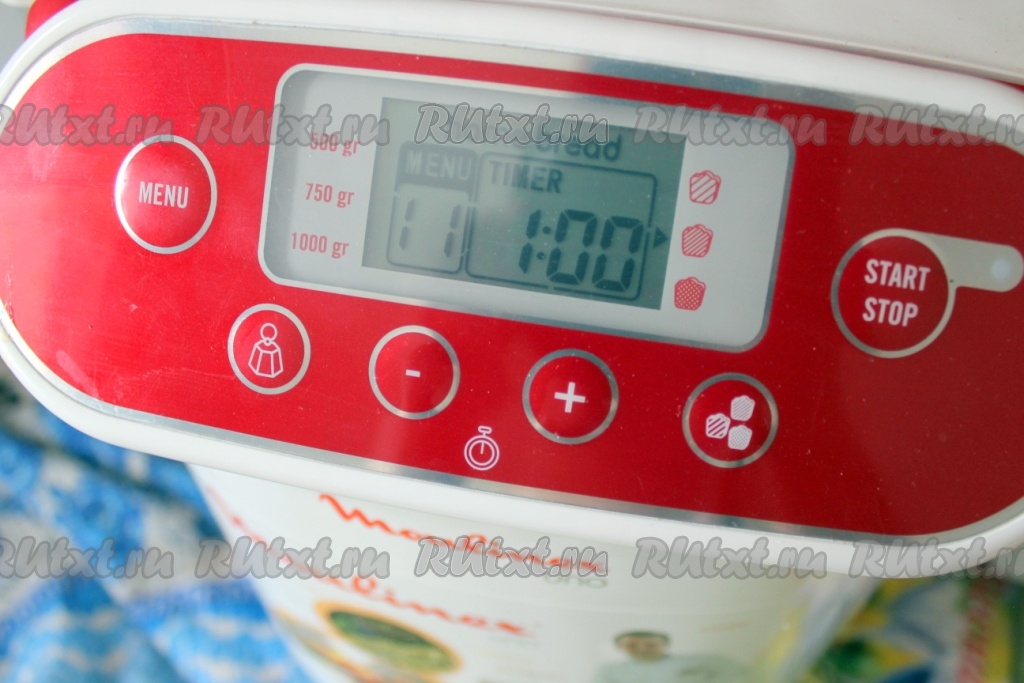 Перелить тесто для манника на кефире в контейнер хлебопечки и установить режим "выпекание" и время "1 час".