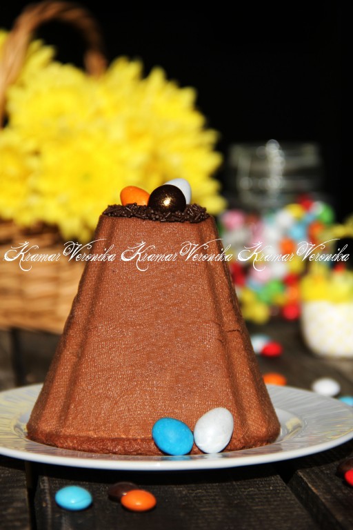 Шоколадная творожная пасха, приготовленная без добавления яиц, получается нежной и очень вкусной. Украсить её можно по своему усмотрению (например, можно посыпать цветной посыпкой или полить растопленным шоколадом). Такая пасха станет отличным блюдом для пасхального стола!