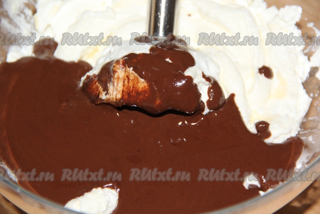 Пробить блендером творожно-шоколадную массу до однородного состояния.