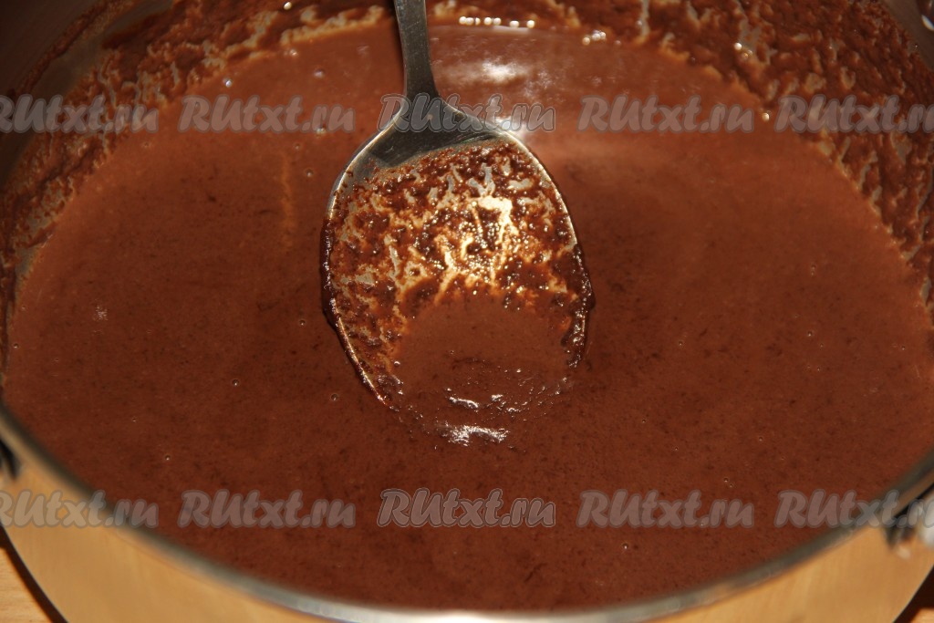 Прогреть молоко с шоколадом, не доводя до кипения, на среднем огне, помешивая (шоколад должен полностью растопиться), снять с огня и дать шоколадной массе остыть.
