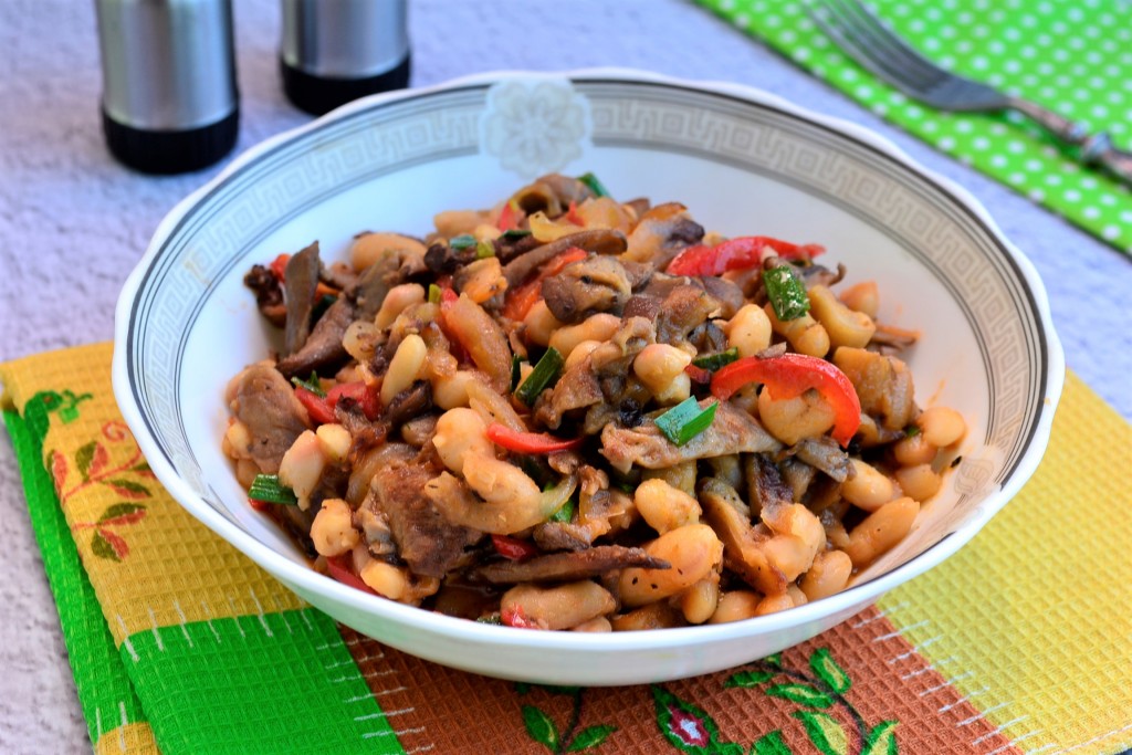 Подать фасоль, тушёную с грибами в томатном соусе, к столу можно в горячем, тёплом или охлаждённом виде. Это ароматное блюдо и насытит, и порадует отменным вкусом.
