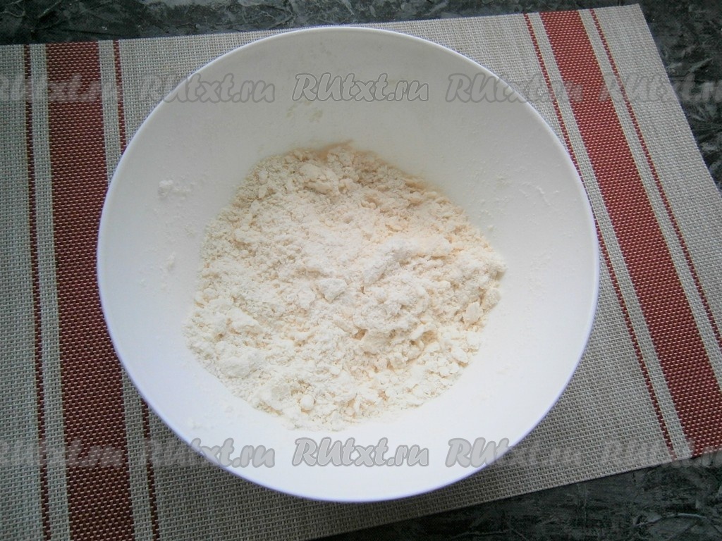 Перетереть руками получившуюся смесь в мелкую крошку.