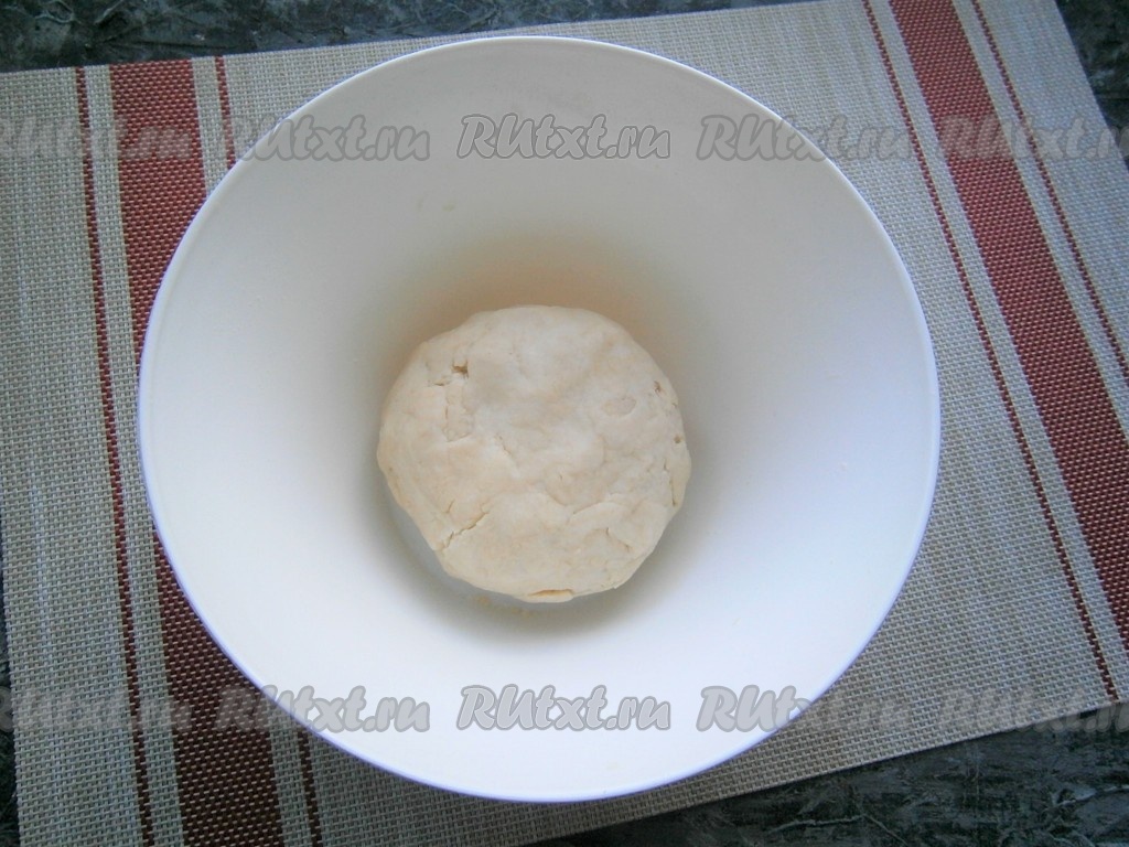 Добавить ледяную воду и быстро замесить плотное, достаточно тугое, не липнущее тесто, которое обернуть пищевой плёнкой и поместить в холодильник на 30 минут.