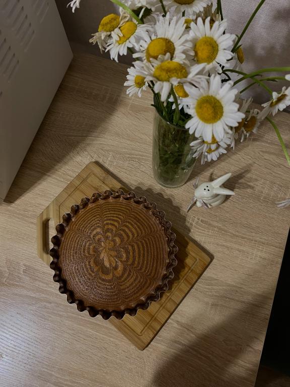 После того как выложите всё тесто, можно нанести сверху рисунок с помощью деревяной шпажки (или зубочистки).