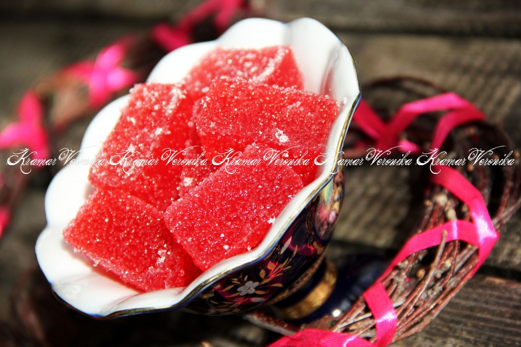 Вот такой домашний мармелад из варенья и агар-агара получился. Он очень вкусный, съели за одно чаепитие!