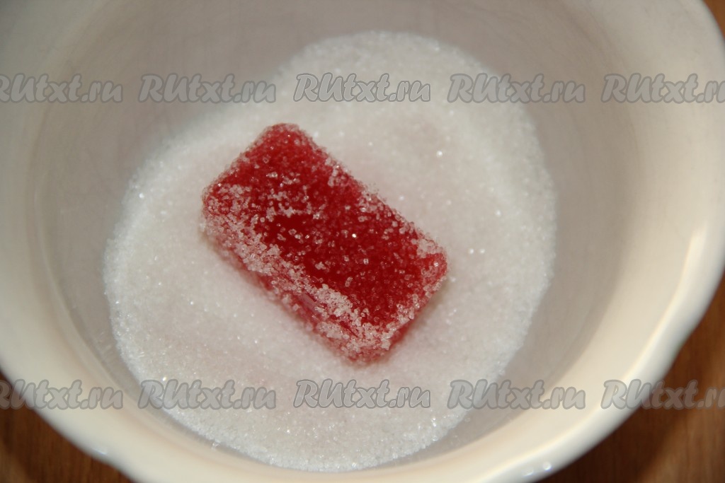 Готовый мармелад аккуратно извлечь из формы и обвалять в сахаре.