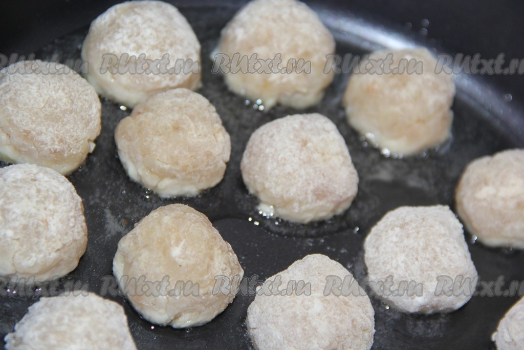 Обжарить фрикадельки с двух сторон на среднем огне до золотистого цвета.