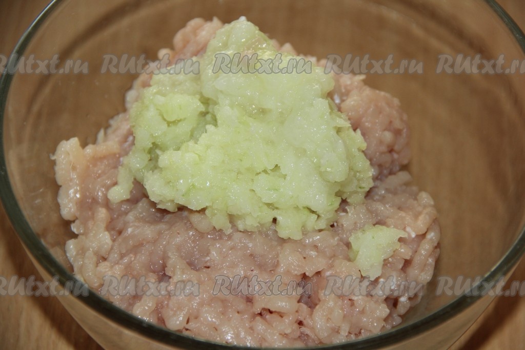 Для приготовления начинки пропустить через мясорубку кусочки мяса, отделённые от костей, и очищенную луковицу, разрезанную на части.