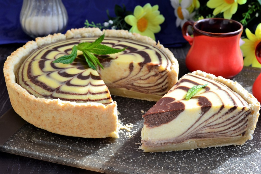 Предлагаю вам один из самых шикарных вариантов всем известного пирога "Зебра". Творожный пирог "Зебра" готовится по типу чизкейка и получается очень вкусным и нежным. Его можно испечь к вечернему чаепитию, украсит он и праздничный стол. Попробуйте, этот пирог не только необычайно вкусный, но ещё и очень эффектный!