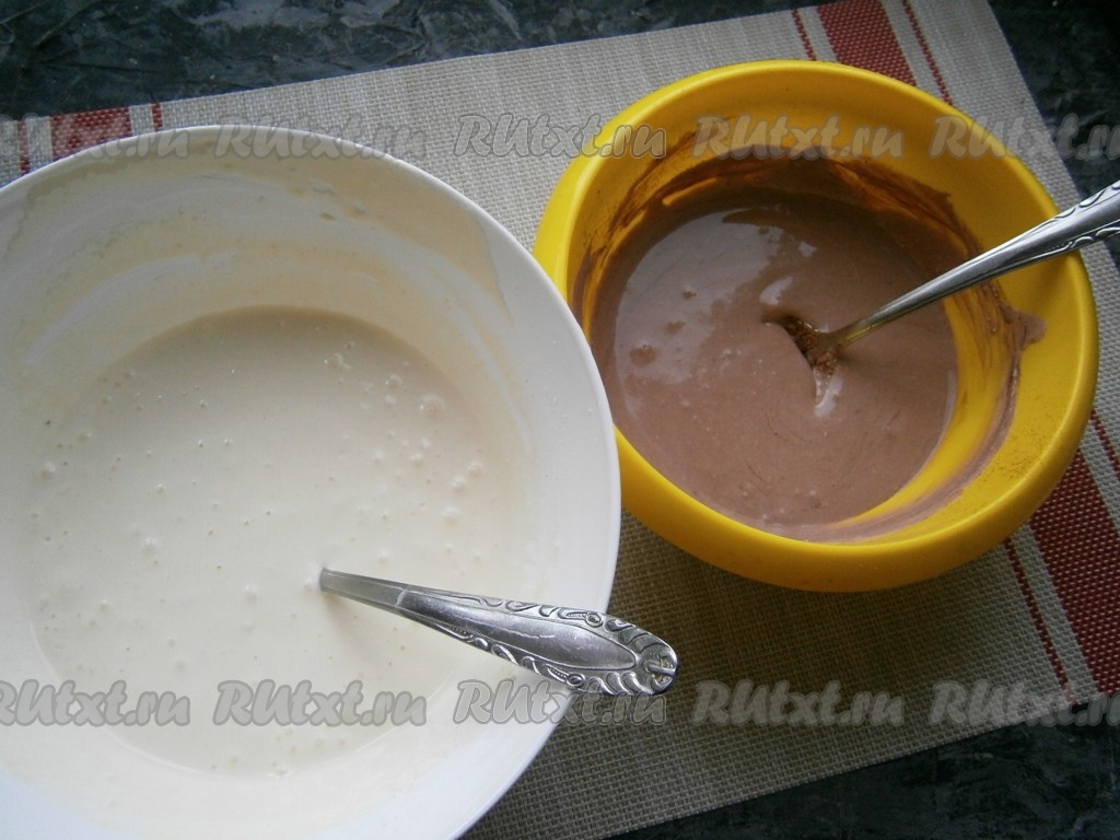 Тщательно обе смеси перемешать. Смеси получатся легко стекающими с ложки.