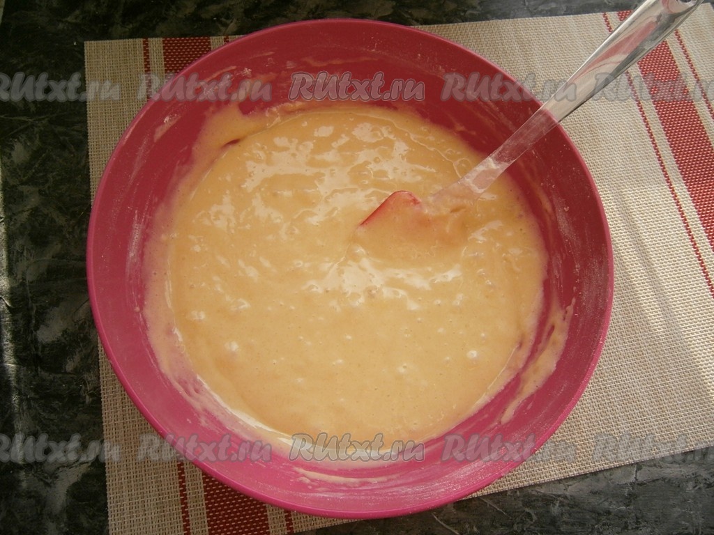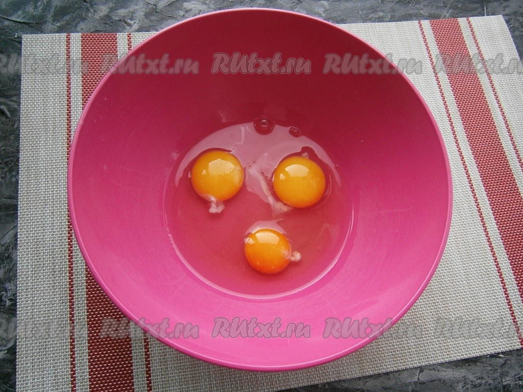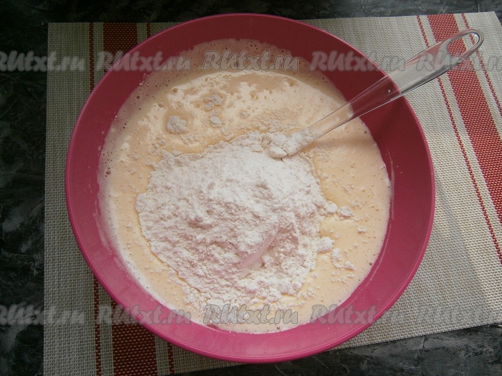 Взбить яйца миксером до пены, а затем, постепенно всыпая сахар, продолжать взбивать до пышной светлой массы (взбивать около 4-5 минут). Влить растительное масло и перемешать.