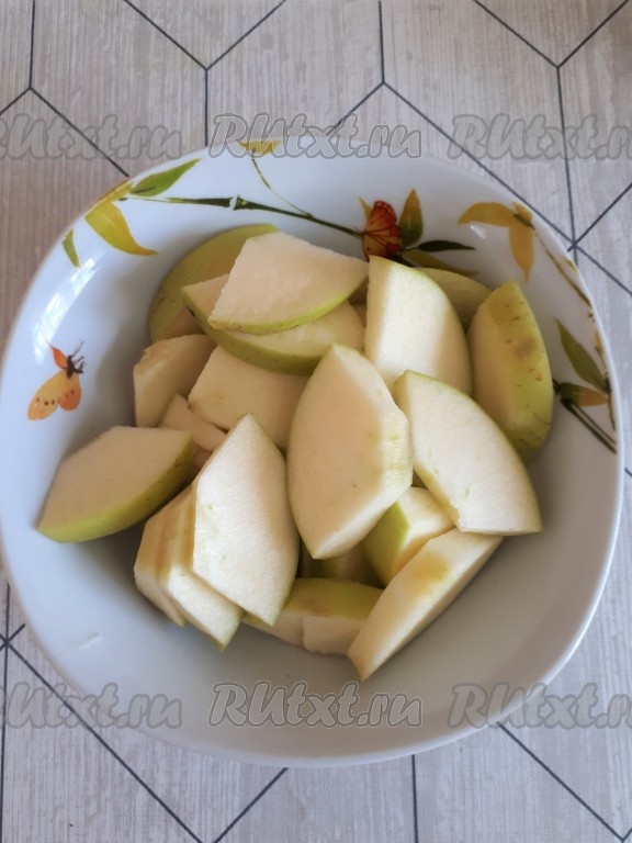 Яблоко нарезать на дольки, удалив сердцевину.