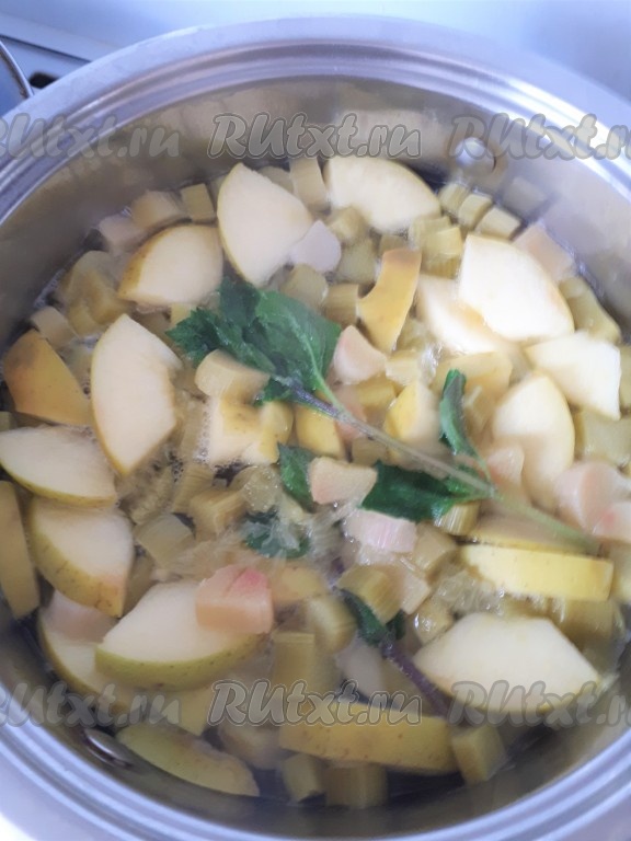 Компот из ревеня и яблок - очень приятный на вкус освежающий напиток. Для большего аромата я добавила несколько веточек мяты. Количество сахара можно регулировать по вкусу. В мае-июне, в сезон ревеня, стоит приготовить такой компот и насладиться его тонким ароматом и вкусом. Настоящий напиток для жарких дней!