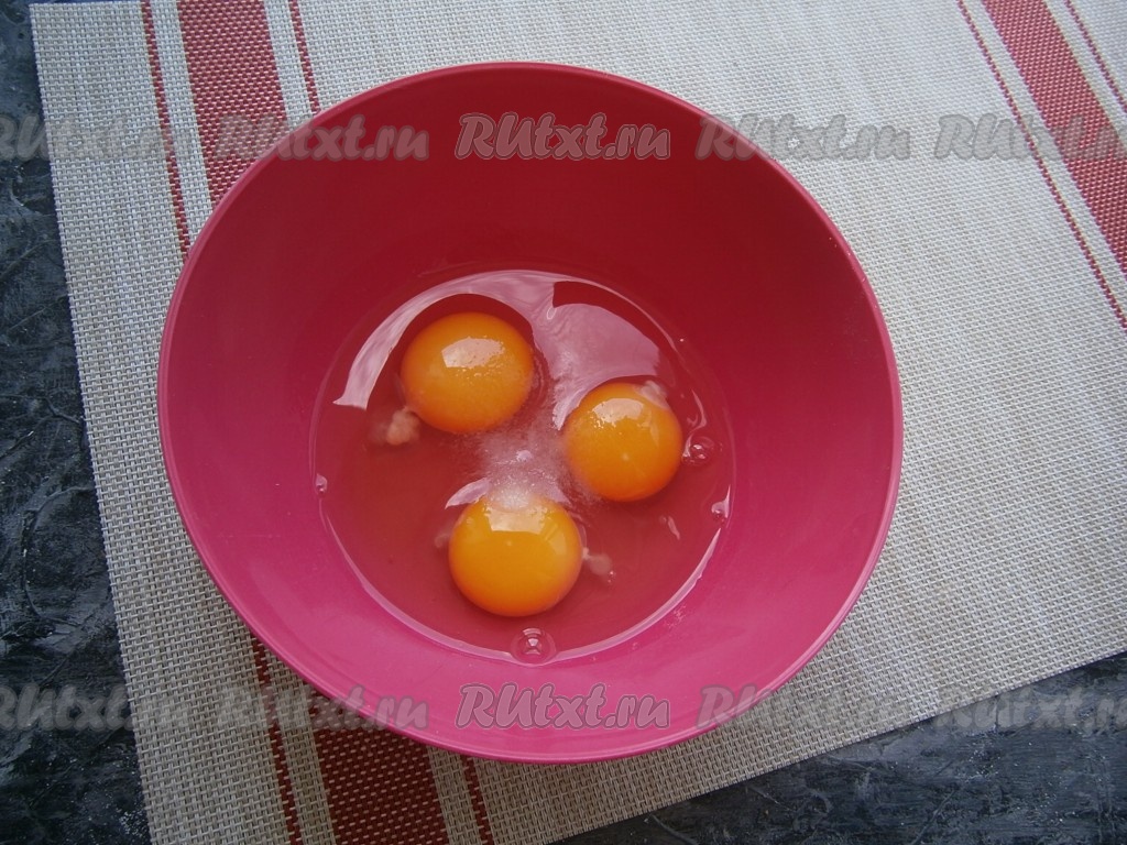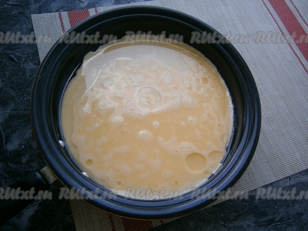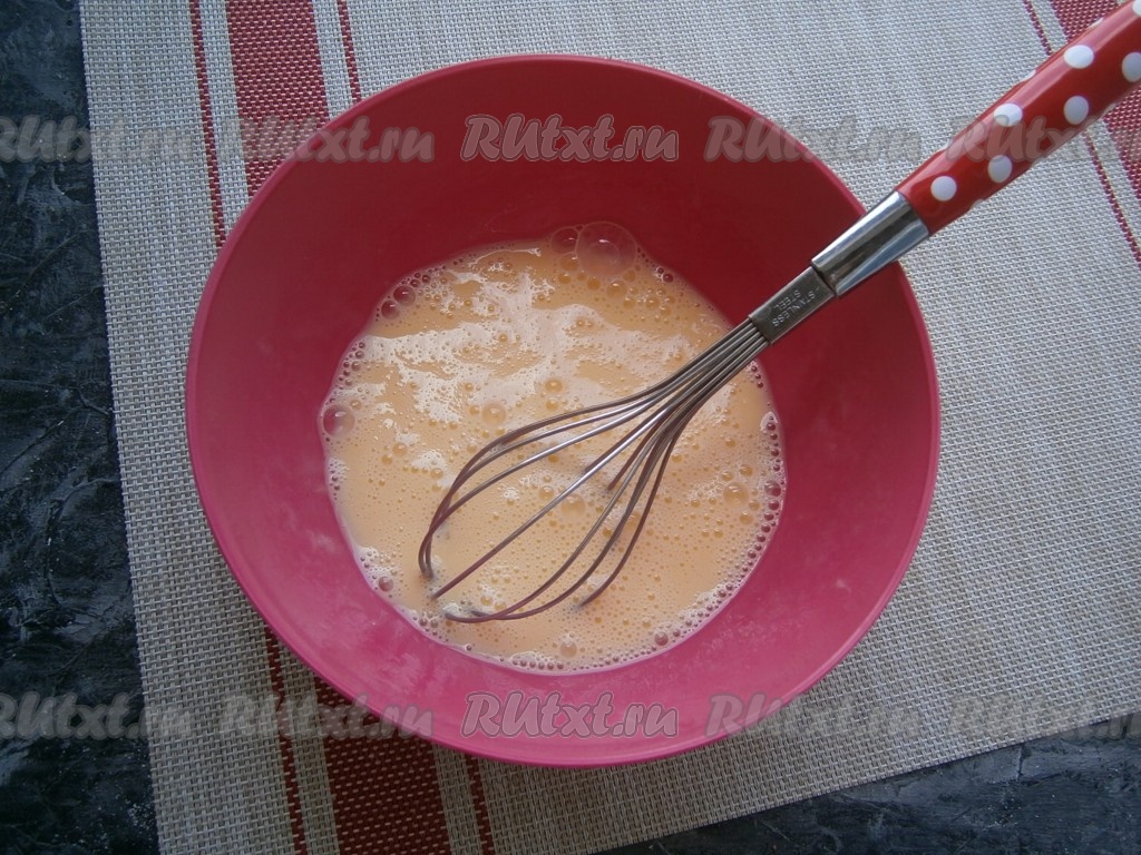 Тщательно взбить яйца со сметаной венчиком (до однородного состояния).