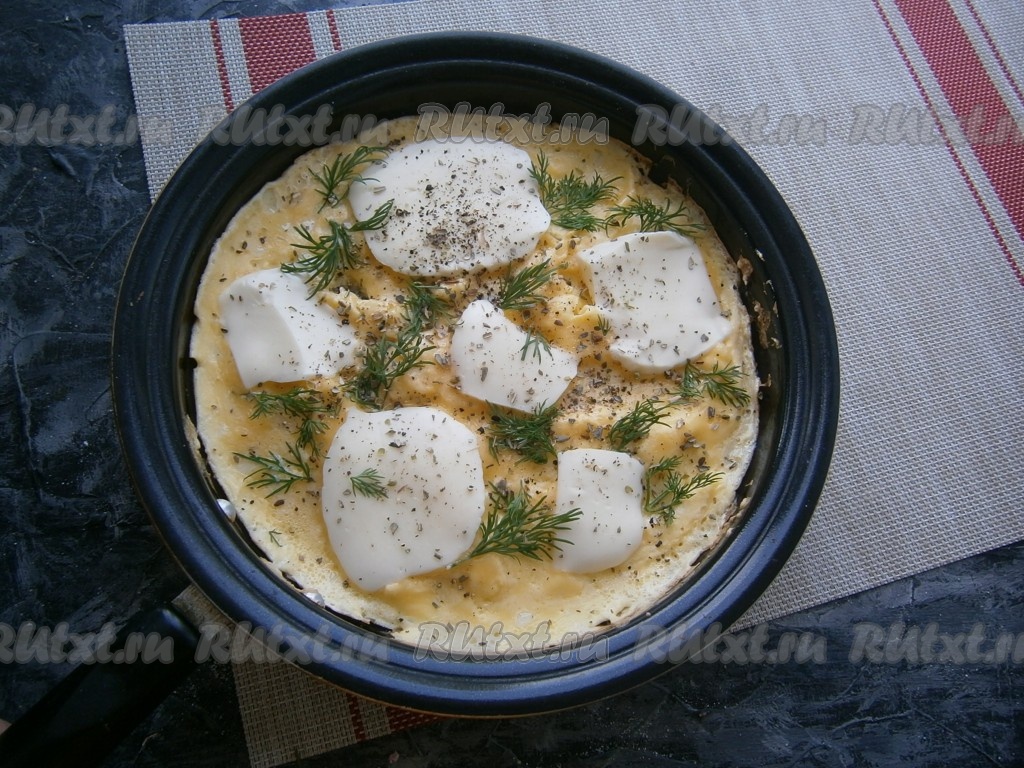 Подавать к столу вкуснейший омлет, приготовленный с моцареллой, нужно сразу.