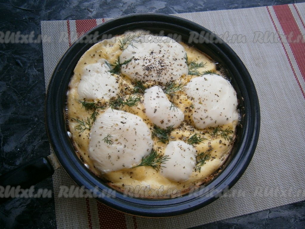 Сковороду разогреть с оливковым маслом и вылить в неё яичную смесь.
