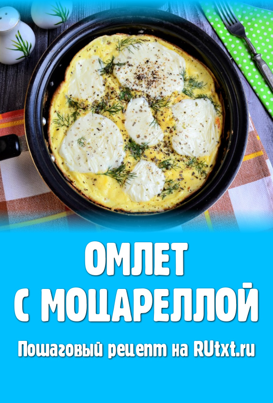 Накрыть сковороду крышкой и на самом минимальном огне готовить омлет далее до расплавления моцареллы (3-4 минуты).