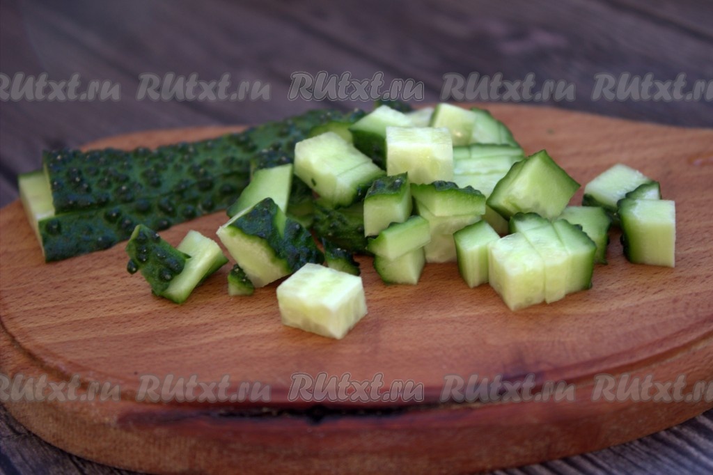 Свежие огурчики вымыть, нарезать на небольшие кубики.