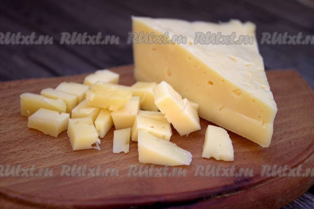 Сыр нарезать на кубики такого же размера, как нарезали огурцы.