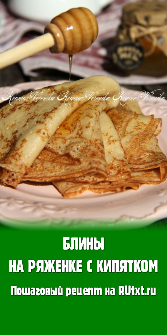 Блины в нашей семье - частые гости, дети их просто обожают. Я пеку блинчики по разным рецептам: на молоке, кефире или кипятке. Недавно приготовила блины, замешанные на ряженке с кипятком. Блинчики получились тонкими, эластичными, вкусными, нежными, с аппетитными дырочками. Такие блины можно подать к столу, дополнив сметаной или мёдом.