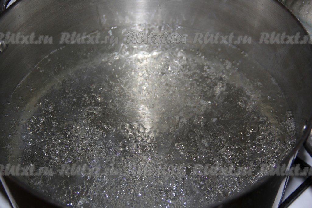 Теперь приготовим сироп, для этого насыпаем в кастрюлю сахар, вливаем воду и ставим на огонь. Провариваем сахарный сироп после закипания минуты 3 (сахар за это время должен полностью раствориться).