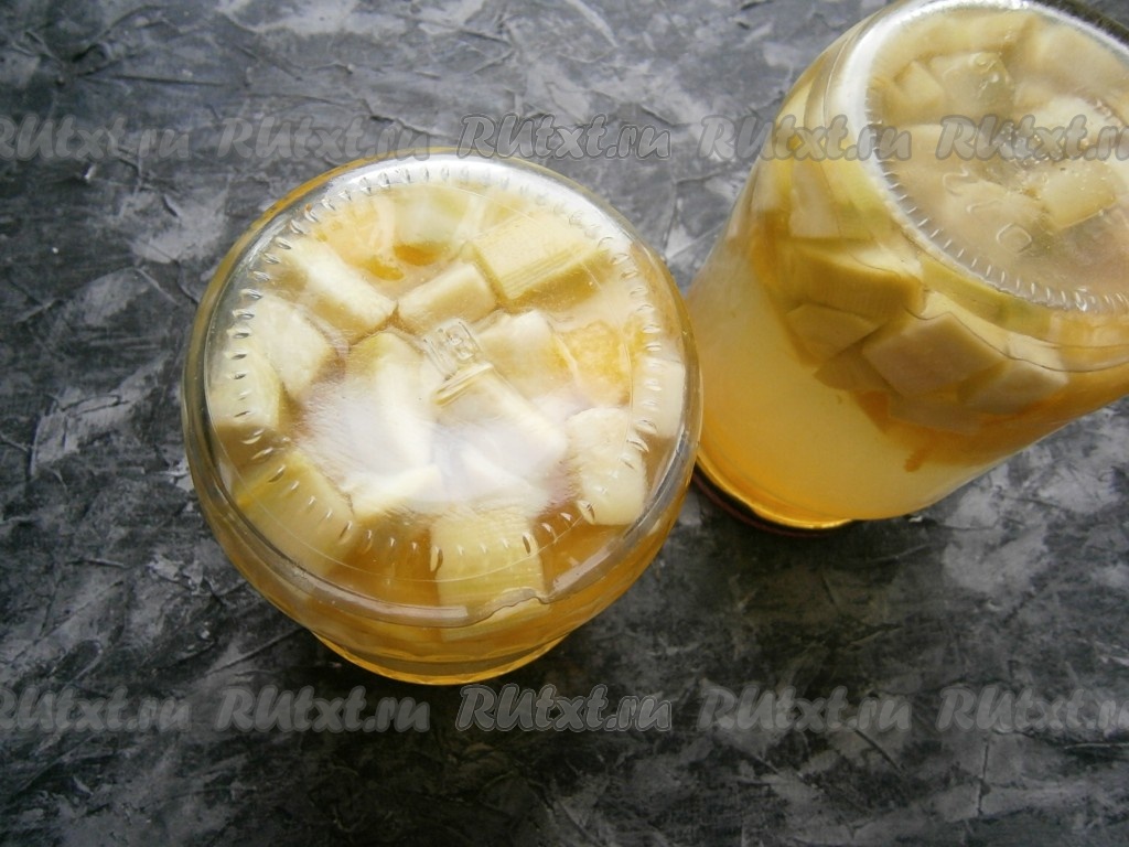 Предлагаю вам заготовить необычный и интересный компот из кабачков с лимоном и апельсином на зиму. Напиток получается очень вкусным, сладким, с ярким цитрусовым ароматом. Кабачки в компоте становятся похожи по вкусу на консервированные ананасы - очень необычно и вкусно! Из данного количества продуктов получится 2 баночки по 750 мл. Хранится компот в прохладном месте.
