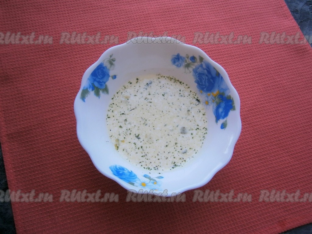 Для приготовления соуса соединить сметану с водой, солью и овощной приправой, тщательно перемешать.