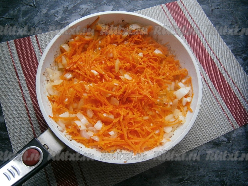 Далее добавить к кабачкам лук, перемешать, обжарить около 3-4 минут, помешивая время от времени, затем добавить морковь, перемешать.