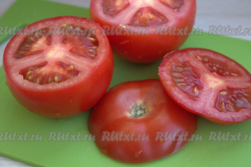 Помидоры вымыть, с каждого помидора срезать верхушку, должна получиться "крышечка". Крышечку не выбрасываем.