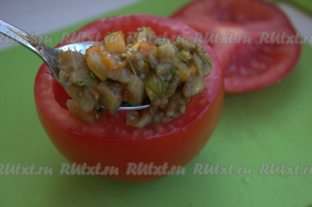 Каждый помидор нафаршировать подготовленной начинкой из баклажанов и перца.