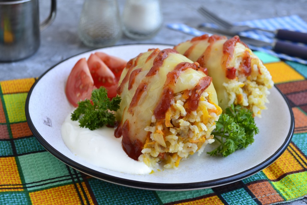 Подавать необычайно вкусный фаршированный перец по-молдавски горячим со сметаной и, по желанию, с томатным соусом или кетчупом.