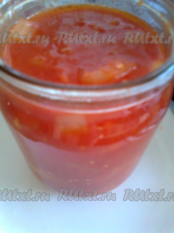 Когда томатное пюре проварится 20 минут, добавляем в него нарезанный болгарский перец, перемешиваем и тушим 30 минут, иногда помешивая.