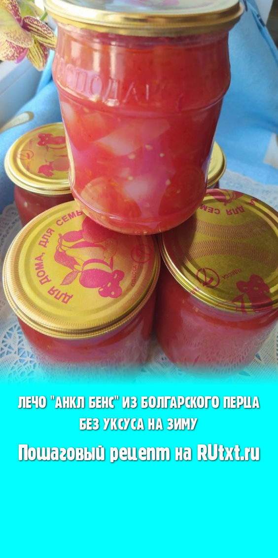 Надеюсь, вам понравится и приятно удивит рецепт лечо "Анкл Бенс", приготовленного из болгарского перца без добавления уксуса на зиму.